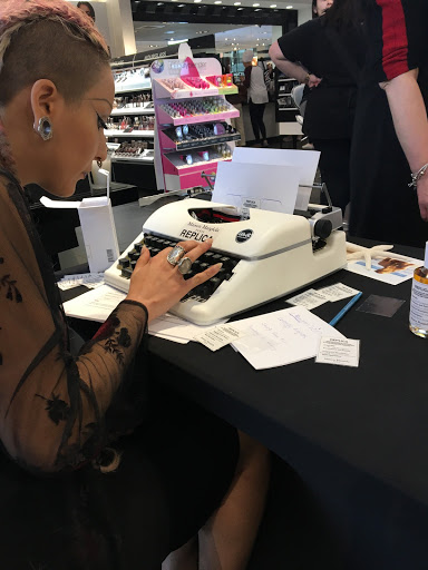 It is a delicious unisex fragrance that is so very warm and comforting. It reminds me of being at the cottage, sitting by a bonfire, and that smoky scent that gets infused into your hair and clothes. My friends and I always joked of making a campfire-scented perfume, so I was instantly intoxicated by this scent and the memories attached with it. It has notes of pink peppercorn, chestnuts, clove, balsam, and vanilla. Part of the reward was to have a personalized label for the bottle created for you. The fragrance consultant asked me how I would describe this scent and a period I wanted to associate with it. She typed up my personal cotton label using a vintage typewriter. I loved this touch! It makes the bottle mine.