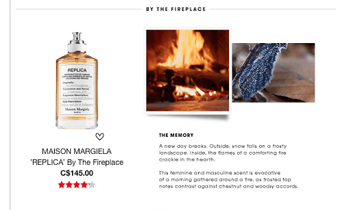 The concept behind the replica line is to create fragrances that evoke a specific memory, taking you back to that very moment in time. Each apothecary-style bottle is printed with a label that explains the inspiration for the scent, including the place and period in which it took place. After exploring the entire line, I fell in love with By the Fireplace. As someone who solely wears fruity florals, this is very different for me!