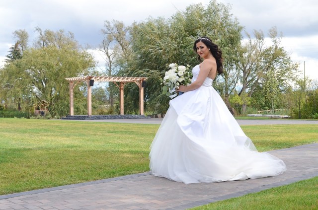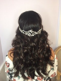 The next task was to decide on my hair for the big day. One thing I knew was that I did not, under any circumstances, want a veil. In lieu of a veil, I had pictured a sparkly, vine-y, halo-type thing, and was blown away to find a piece that was my EXACT vision. My headpiece was the “Sage” by Untamed Petals and I got it at Sash & Bustle boutique in Toronto. The original design of this piece is a duet (can be worn in the hair or as a sash), so the jewelled part only went about 2/3 of the way around the head and then fastened with a ribbon. I really wanted it to be fully enclosed (think flower crown made of jewels) and luckily they were able to custom order a lengthened version for me that would wrap all the way around. I feel more comfortable with my hair down so I decided to go with big, loose, romantic curls. I have pretty fine hair, so I decided to wear extensions for added volume and oomph. I needed big hair to match my big dress! I wore clip-in extensions from Locks & Mane in the shade Dark Chocolate (they matched perfectly!). I am SO happy with how this turned out. I went back to Fancy Face for a hair trial with Shannon right before my first dress fitting. She was wonderful!